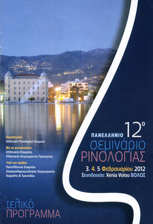 12ο Πανελλήνιο Σεμινάριο της Ελληνικής Ρινολογικής Εταιρείας. Με τη συνεργασία της Ελληνικής Εταιρείας Πλαστικής Χειρουργικής Προσώπου, Βόλος 3-5.02.2012. Περισσότερα... |