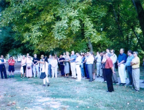 Αναμνηστικές φωτογραφίες των συνέδρων από την ξενάγησή τους στον τόπο της Σχολής του Αριστοτέλη.