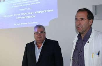 Ο Dr. med. Bασίλης Παυλιδέλης, προσκεκλημένος από τον Διευθυντή της ΩΡΛ Κλινικής του Γενικού Νοσοκομείου Χανίων κ. Χαρίτωνα Παπαδάκη, παρουσίασε ομιλία με θέμα "Εξελίξεις στην Πλαστική Χειρουργική του Προσώπου". Η ομιλία πραγματο-ποιήθηκε στις 04.11.13, στα πλαίσια των Μετεκπαιδευτικών Μαθημάτων Ωτορινολαρυγγολογίας του Νοσοκομείου για το ακαδημαϊκό έτος 2013 - 2014.