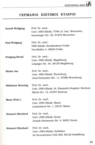 Το περιεχόμενο που ακολουθεί είναι ακριβές αντίγραφο από την πρώτη επετειακή Επετηρίδα Ελλήνων Ωτορινολαρυγγολόγων, έκδοση 2000